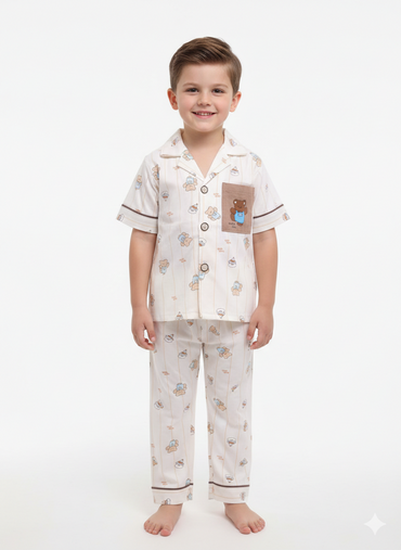 Boys' Cute Bear Print Button-Down Night Suit Set
