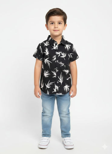 Regular price Rs. 1,299.00Sale price Rs. 1,299.00 Regular priceUnit price perDescription Get him vacation-ready with these effortless, botanical-print shirts, available in light cream and classic black. Tropical Aesthetic: Decorated with a stylish, all-over leaf pattern featuring...