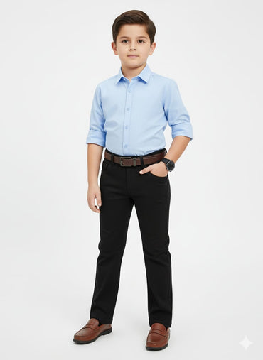 Regular price Rs. 1,799.00Sale price Rs. 1,799.00 Regular priceUnit price perDesign & Fit Style: Flat-front dress trousers with a clean, streamlined appearance.Fit: Slim to regular fit, providing a modern silhouette that isn't overly baggy.Colour: Solid Black,...