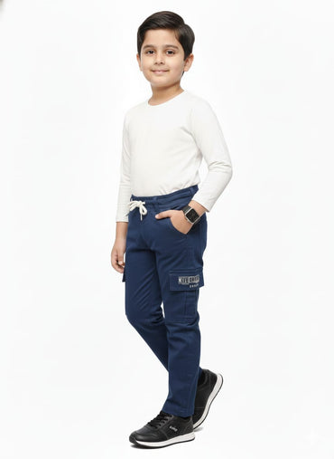 Regular price Rs. 750.00Sale price Rs. 750.00 Regular priceUnit price perKey Design Features Elasticized Waistband: The pants include a comfortable waistband with a contrasting white functional drawstring.Cargo Detailing: There are flap-covered cargo pockets on the sides...