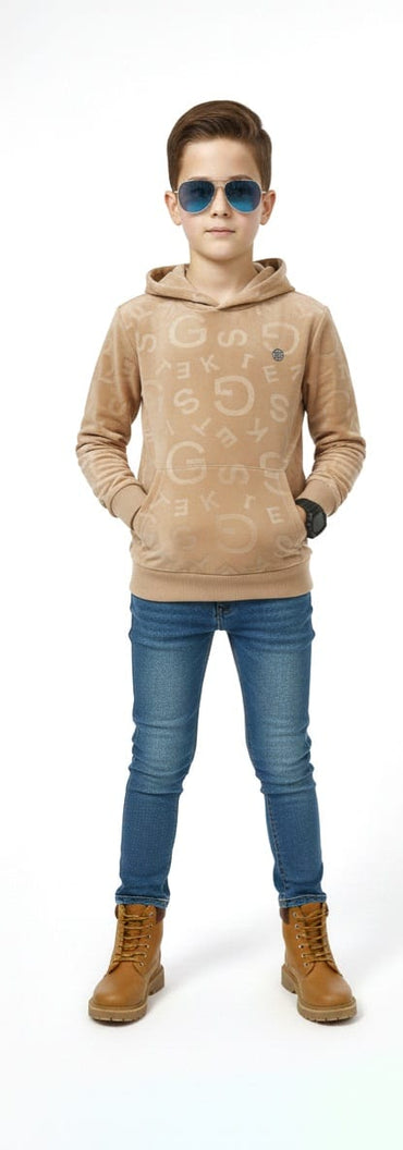Regular price Rs. 1,599.00Sale price Rs. 1,599.00 Regular priceUnit price perColor and Pattern: The hoodie is a light tan color, featuring an all-over tonal print of large letters, including prominent "G" and "S" characters.It has ribbed...