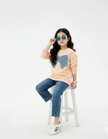 Regular price Rs. 1,450.00Sale price Rs. 1,450.00 Regular priceUnit price perA vibrant magenta or hot pink sweatshirt. It features a large, decorative butterfly graphic made of sequins or metallic print, giving it a shimmering effect.