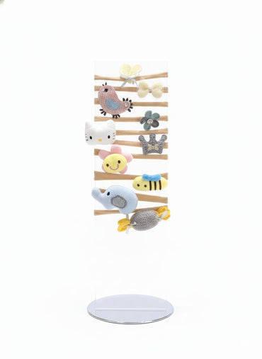 Product Specifications: Feature Details Material Soft-touch Synthetic Fabric / Durable Metal Clip Design Scalloped-edge Bear Face (Biscuit Style) Color Way Honey Beige & Dark Chocolate Set...
