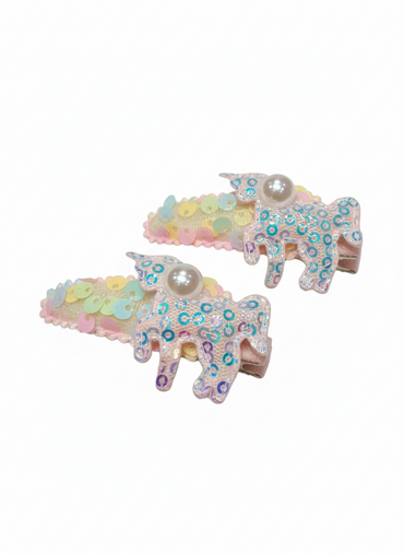 Product Details: Quantity: 2 Clips per pack Colors: Iridescent Pink, Pastel Yellow, Mint, and Lavender Style: Alligator-style fastener Size: Approximately 2.5 inches (perfect for side-swept hair...