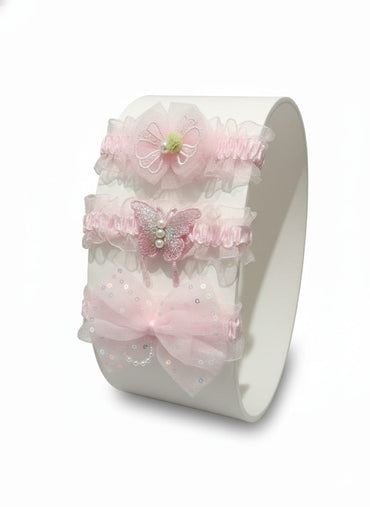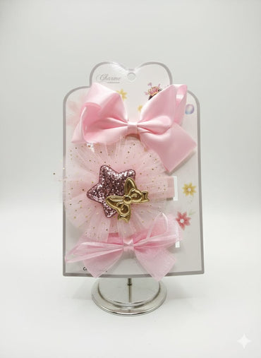 Design: These clips feature a light blue, scalloped fabric base that resembles a butterfly wing or cloud. Embellishments: Each clip is adorned with a glittery blue...