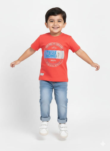 Boys' Red "True & Honest" Graphic Casual T-Shirt