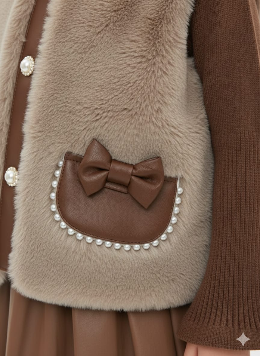 - Warm Texture: The centerpiece is a plush, light brown faux fur vest designed for comfort and warmth.