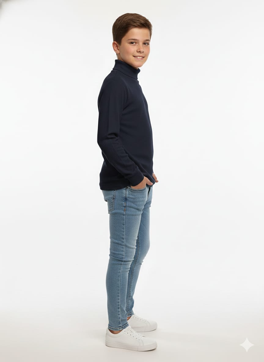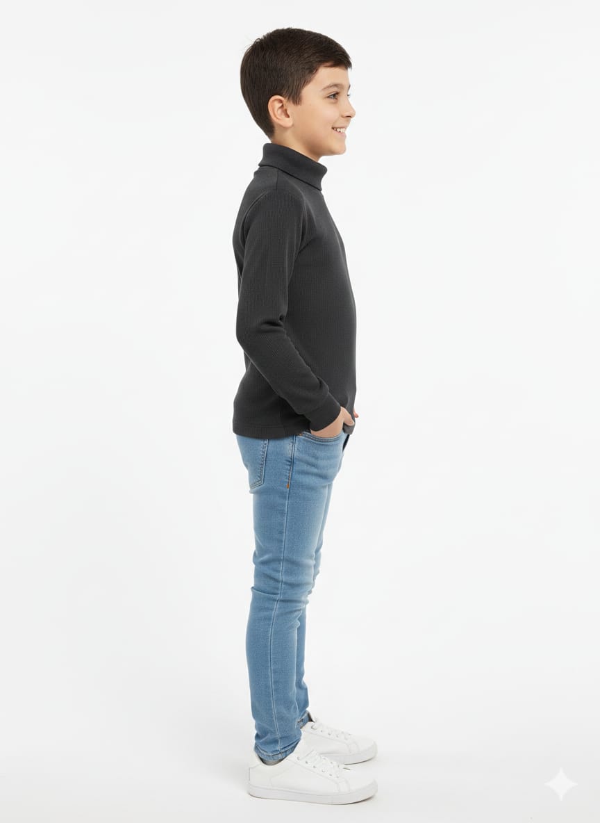 Neckline: It features a wide turtleneck (roll-neck) collar for added warmth