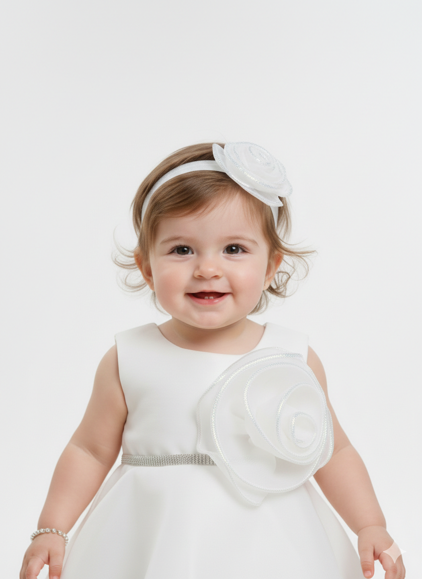 Signature 3D Floral: A large, handcrafted organza rosette takes center stage on the bodice for a high-fashion boutique finish.