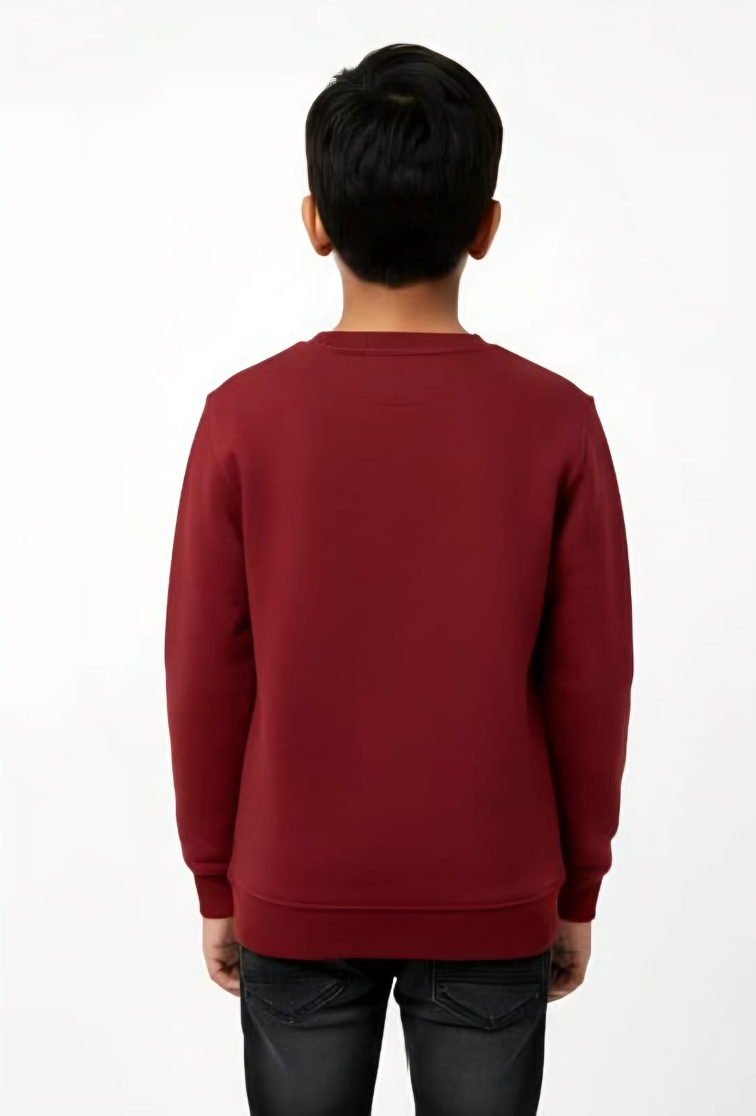 This is a cozy, burgundy-colored sweat set for boys featuring a classic, sports-inspired "VARSITY" baseball graphic on the sweatshirt.The set includes a long-sleeved crewneck sweatshirt and matching jogging pants (which also feature a "VARSITY" print on the lower leg). It's a comfortable and stylish outfit, perfect for casual wear.
